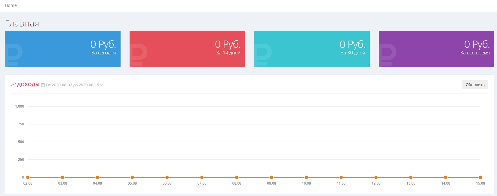 На главной (домашней) странице отображаются все денежные поступления со всех подключенных к вашему аккаунту серверов.