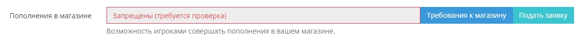 Возможность игроками совершать пополнения в вашем магазине по стандарту отключена. Чтобы включить данную возможность, ваш магазин должен соответствовать определённым требованиям.