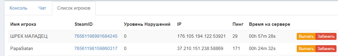 Во вкладке "Список игроков"